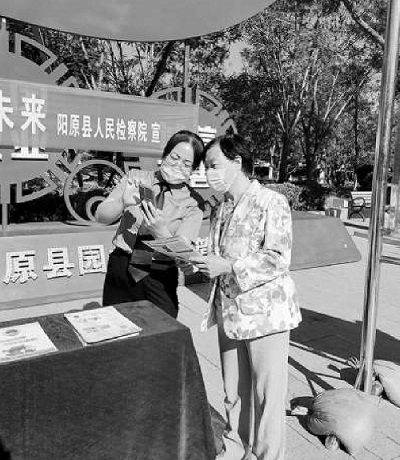 不久前,河北省阳原县检察院干警深入乡镇,回访查看农药包装物整改落实及是否还存在随意丢弃的情况。