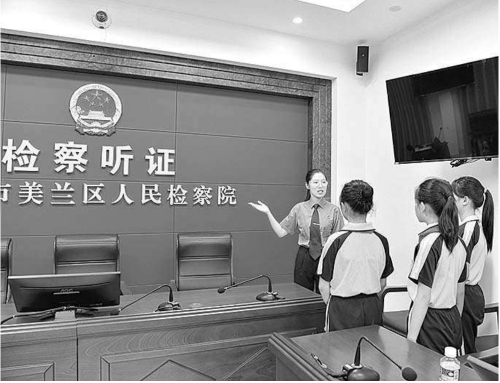 海口市美兰区检察院开展“检爱同行,共护花开”主题检察开放日活动。