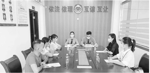海口市琼山区检察院干警通过参观、召开座谈会等形式与企业负责人进行交谈,了解企业日常经营中的法治需求。