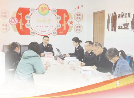 图①:常州经济开发区检察院检察官在申诉人住所地村委会调解室主持召开听证会。