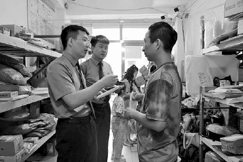 8月9日,黑龙江省鹤岗市检察院的检察官到快递网点对快递运单加密落实情况进行回访。 刘道光摄