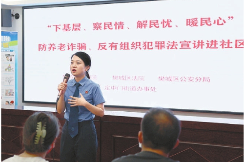 李雪君在辖区街道办事处宣讲反有组织犯罪法。