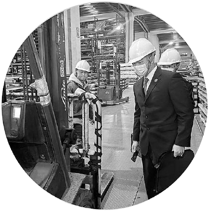 虎丘区检察院检察官在辖区一家制造企业调查叉车安全作业情况。
