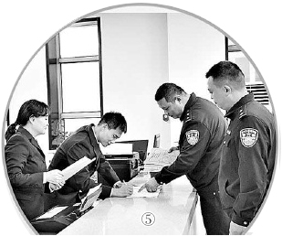 图⑤:安阳市检察院案管中心工作人员接收公安民警移送的案卷。