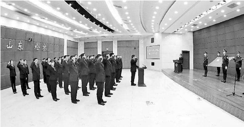 “我宣誓:忠于中华人民共和国宪法,维护宪法权威……”近日,山东省检察院组织2023年以来市县检察院新晋升一级、二级高级检察官以及省检察院新晋升、新进人员进行宪法宣誓,各市检察院设分会场,以视频连线方式进行宣誓。山东省检察院党组书记、检察长顾雪飞监誓并讲话,要求大家坚定宪法信仰,筑牢政治忠诚,以高质量检察履职助推全省经济社会高质量发展。