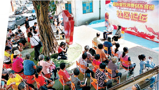 广东省江门市江海区江南街道江翠社区召开制止餐饮浪费行为立法百姓论坛。