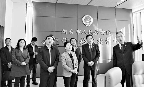 10月27日,山东省烟台市人大常委会主任朱秀香带队到烟台市检察院调研指导工作。朱秀香一行实地查看该院公益诉讼检察指挥中心、党建长廊及胶东(烟台)检史陈列馆等场所,了解该院检察工作开展情况,并给予充分肯定。图为朱秀香(右四)在该院公益诉讼检察指挥中心听取工作汇报。
