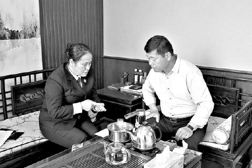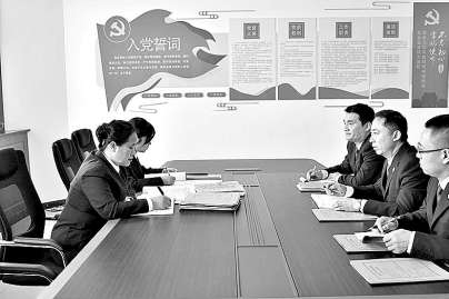 庆云县检察院检察官向魏德东代表汇报案件办理情况。