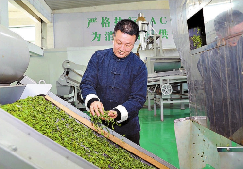 肖勇在萧氏茶业有限公司生产车间查看茶叶生产加工情况。