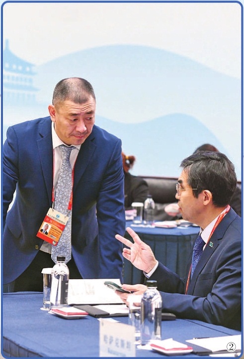 图②:哈萨克斯坦代表团与会人员在会前交流。