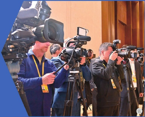 图⑧:11月8日早上7时许,各路媒体记者早早来到会见拍摄区域架好机位等待拍摄。