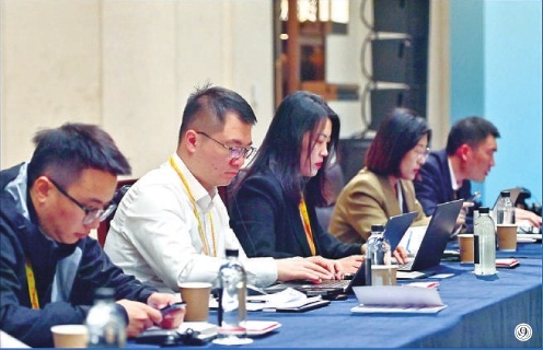 图⑨:11月8日大会开幕,恰逢第24个中国记者节,与会记者全身心投入采访工作中。