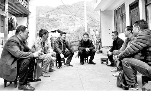 大理州检察院检察长崔庆林(左三)到群众家中化解矛盾纠纷。