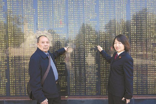 近日,湖南省龙山县检察院检察官陪同烈士田大贵之弟田大春等人,来到该县烈士陵园。暖阳照耀下,烈士英名墙上“田大贵”三个字格外闪亮。