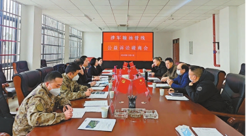 花溪区检察院会同部队及相关行政部门召开公益诉讼磋商会,主持签订输油管线保护协议。