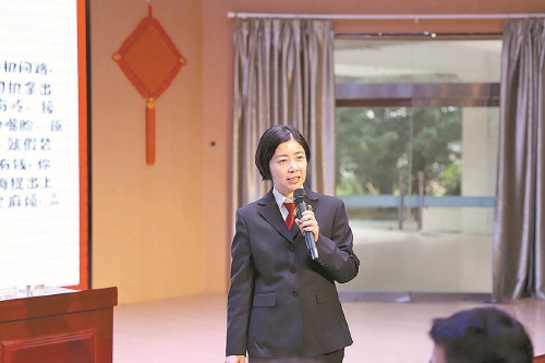 2023年10月27日,朱晓燕在江苏省常州经济开发区遥观中心小学上法治课。