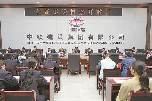 西安市灞桥区检察院在西安高铁东站项目部开展公益诉讼检察开放日活动。