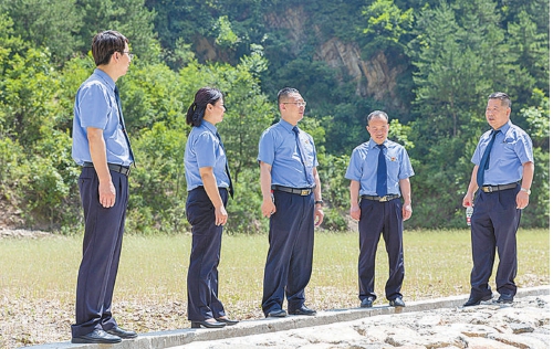 蓝田县检察院检察长带领该院公益诉讼检察干警对“铁铜沟尾矿库”闭库修复情况进行查看。