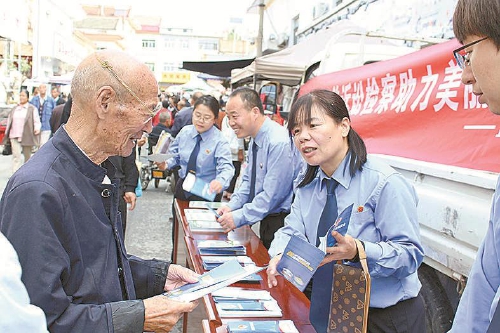 蓝田县检察院第二检察部干警前往玉山镇开展公益诉讼检察普法宣传活动。