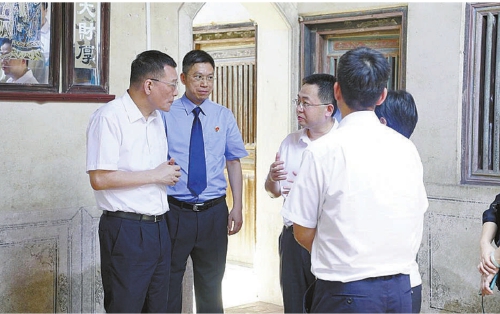 2023年6月,广东省检察院党组书记、检察长冯键(左一)赴梅州市调研,在位于梅江区三角镇上坪村的刘复之故居了解检察机关推动故居修缮建设工作进展情况。