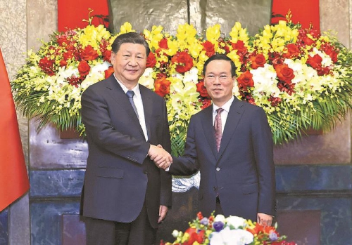 新华社河内12月13日电(记者孙浩 刘锴)当地时间12月13日上午,中共中央总书记、国家主席习近平在河内主席府同越南国家主席武文赏举行会谈。