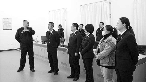 近日,辽宁省丹东市检察院邀请人民监督员监督派驻看守所检察工作。人民监督员通过查看值班室、监控中心、在押人员监室、医务室等区域,了解看守所羁押现状、在押人员生活情况等,并提出意见建议。 本报通讯员董宇丹摄