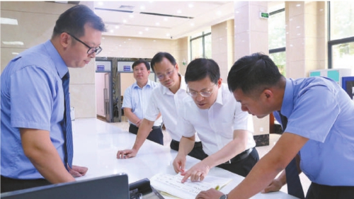 2023年8月31日,二级大检察官,广西壮族自治区检察院党组书记、检察长茅仲华(右二)在广西藤县检察院12309检察服务中心调研。