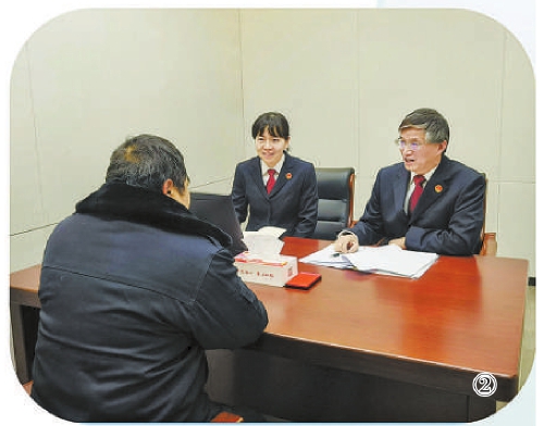 图②:2023年4月,浙江省宁波市北仑区检察院对一起民事审判监督案件提出再审检察建议,使当事人老褚摆脱莫名背负的债务。图为当事人到检察机关申请监督。