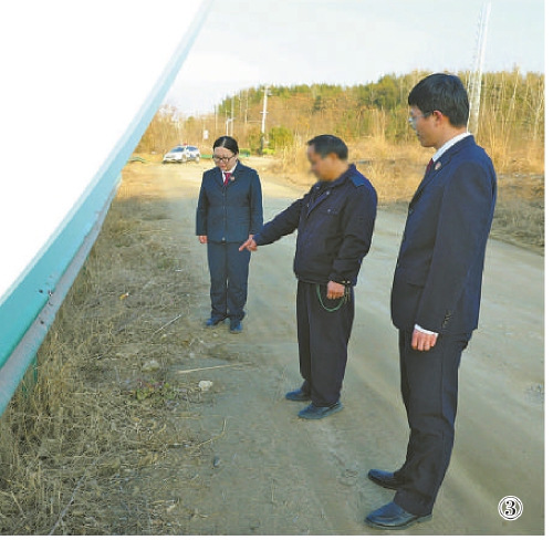 图③:2023年6月,湖北省浠水县检察院对一起构筑物塌陷责任纠纷案向法院提出再审检察建议。法院再审撤销原判决,判决由相关责任人承担赔偿责任。图为办案检察官查看事故现场。