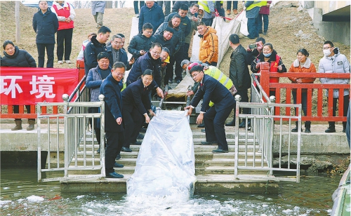 2023年12月26日,江苏省海安市检察院联合海安市农业农村局、生态环境局、水利局、公安局等部门开展生态环境和资源保护增殖放流活动,约9000公斤、3万尾鱼苗从该市雅周镇迥垛中心桥投放入水。近年来,海安市检察院践行生态修复优先司法理念,在办理非法捕捞水产品刑事附带民事公益诉讼案件中开展生态环境损害赔偿磋商,促使侵权行为人缴纳生态环境修复和资源损害赔偿金,并将其用于购买鱼苗进行增殖放流,取得良好效果。