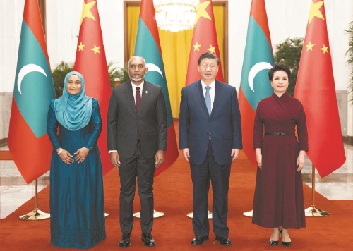 新华社北京1月10日电(记者朱超)1月10日下午,国家主席习近平在人民大会堂同来华进行国事访问的马尔代夫总统穆伊兹举行会谈。两国元首宣布,将中马关系提升为全面战略合作伙伴关系。