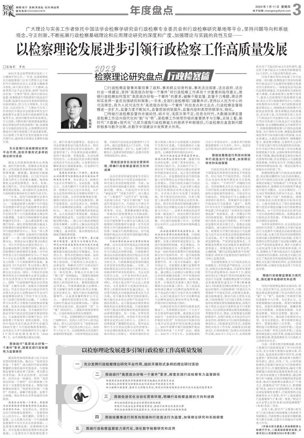 以检察理论发展进步引领行政检察工作高质量发展