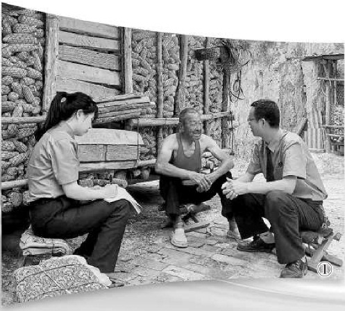 图①:陕西省检察院干警走访南泥湾镇赵家河村村民。