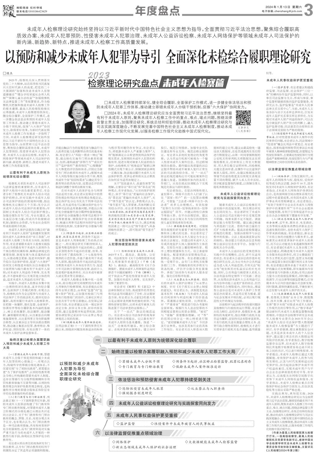 以预防和减少未成年人犯罪为导引 全面深化未检综合履职理论研究