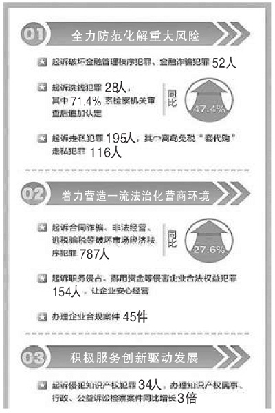 记者了解到,2023年,海南省检察机关紧盯全岛封关运作这个“一号工程”,持续优化检察服务保障举措,全力以赴为海南自贸港建设保驾护航,全力防范化解重大风险。海南省检察院联合省证监局建立资本市场行政执法与检察履职衔接协作机制,全省检察机关起诉破坏金融管理秩序犯罪、金融诈骗犯罪52人。2023年,该省检察机关深化落实上游犯罪和洗钱犯罪同步审查机制,起诉洗钱犯罪28人,同比上升47.4%;突出严惩走私犯罪,起诉走私犯罪195人,其中离岛免税“套代购”走私犯罪116人,同比分别上升28.3%和28.9%。