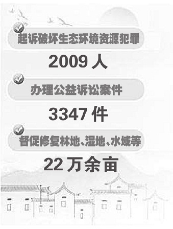 本报讯(通讯员刘荣松)“贯彻长江经济带‘共抓大保护’部署,办理公益诉讼案件3347件,督促修复林地、湿地、水域等22万余亩……”在江西省第十四届人民代表大会第二次会议上,江西省检察机关提交的“生态成绩单”得到人大代表、政协委员的一致肯定。