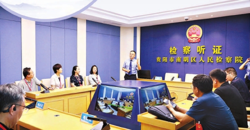 2023年9月,部分全国人大代表视察贵州省贵阳市南明区检察院检察听证室。图为该院检察长向代表介绍听证室建设和使用情况。(资料图片) 本报记者丁艳红摄