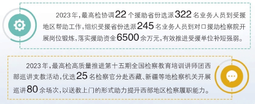 最高检坚持全国检察援助“一盘棋”,紧密结合检察工作实际,持续推进检察业务、业务骨干、教育培训、检察文化、信息科技、资金项目“六位一体”的检察援助。