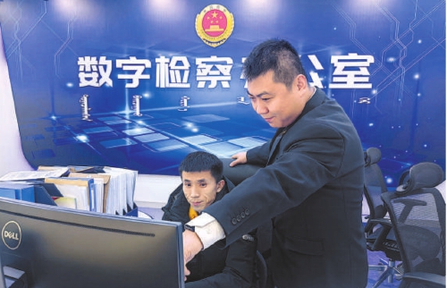 内蒙古自治区鄂尔多斯市东胜区检察院检察官与检察技术人员通过在校学生异常电话卡法律监督模型碰撞数据。