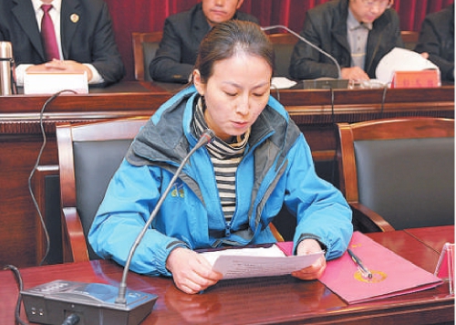 2010年11月,四川省成都市武侯区检察院与得荣县检察院开展结对共建交流工作。图为宁华在交流工作经验。(资料图片)