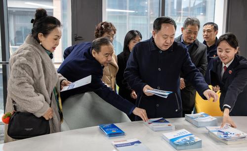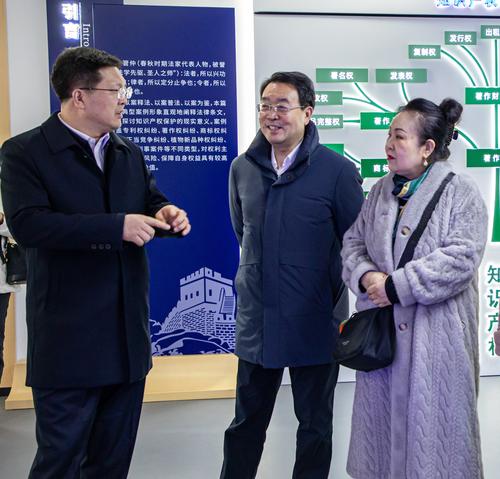 在“秦创原知识产权检察保护中心”,代表委员参观展厅,详细了解陕西检察机关紧盯发展新质生产力需求,构建覆盖全省的知识产权检察保护体系,发挥法律监督职能作用,依法打击侵犯知识产权犯罪,服务保障科技企业创新创业和现代农业发展,推动建设知识产权强省、打造内陆改革开放高地等情况。