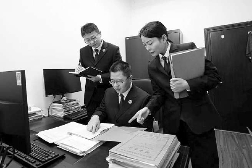知识产权办案组围绕某机械公司侵犯著作权案的细节问题进行讨论。