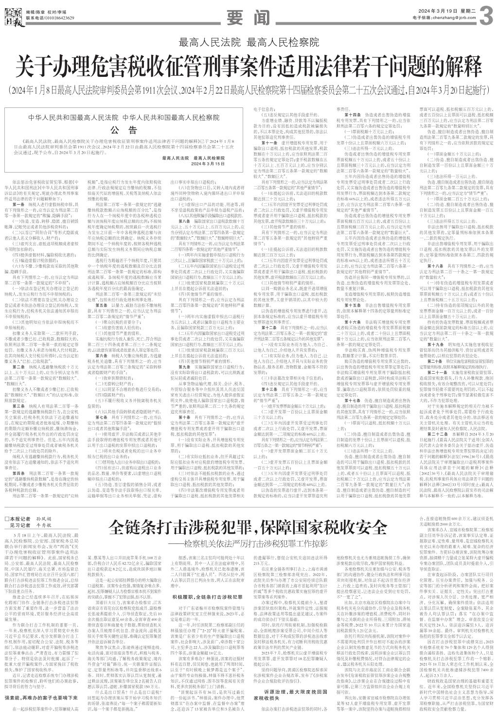 全链条打击涉税犯罪,保障国家税收安全