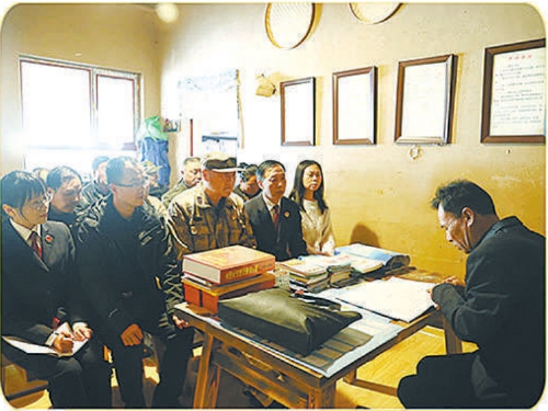 听说全国人大代表要来宣讲全国两会精神,8点不到,马场村的村头小院里已经来了很多人。见到樊九平和检察干警,群众都围拢过来,你一言我一语,昔日安谧宁静的马场村热闹起来。