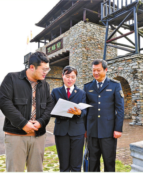 春秋寨位于湖北省南漳县境内,现有建筑是明清以来多次维修建设而成,集中体现了防御与居住为一体的聚落形态,是研究鄂西北地区政治、军事、社会、经济、文化、宗教、建筑等不可多得的标本,具有很高的科学、历史和文化艺术价值。图为近日南漳县检察院联合南漳县东巩镇政府、县文化市场综合执法大队前往春秋寨进行实地走访调研,了解古山寨保护情况。 本报记者戴小巍 通讯员刘江摄
