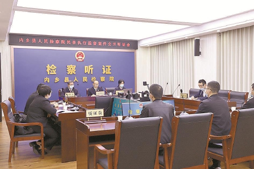 河南省内乡县检察院检察官朱东月就办理的一起民事执行监督案件主持召开公开听证会。