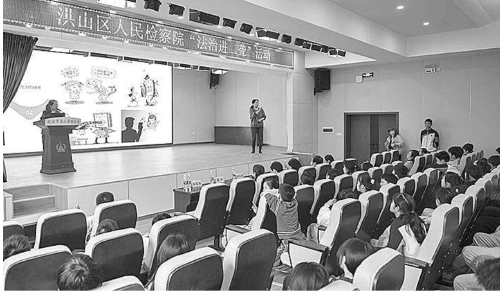 近日,湖北省武汉市洪山区检察院“秦雨工作室”干警走进武汉市第二聋哑学校,开展法治宣讲活动。图为检察官以“我的身体不容侵害”为题讲授法治课,手语老师现场同步翻译。 本报记者周晶晶 通讯员刘诚睿摄