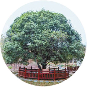 近日,记者在咸宁市城区金桂路与银桂路交叉路口见到一棵桂花树,悬挂于树干的管护牌显示,它已有400余年树龄,依然枝叶繁茂。