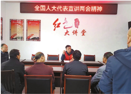 左香云(中)在神山村向村民宣讲全国两会精神。