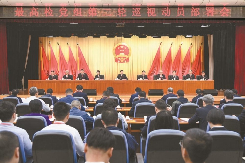 本报北京4月22日电(记者巩宸宇)最高人民检察院党组第二轮巡视动员部署会4月22日在京召开。最高检党组书记、检察长应勇出席会议并强调,要深入学习贯彻习近平新时代中国特色社会主义思想,深刻领悟习近平总书记关于党的自我革命的重要思想和关于巡视工作的重要指示精神,认真贯彻新修订的《中国共产党巡视工作条例》(下称《条例》),落实二十届中央纪委三次全会精神和全国巡视工作会议暨二十届中央第三轮巡视动员部署会精神,牢牢把握政治巡视定位,认真贯彻中央巡视工作方针,始终把“两个维护”作为根本任务,不断提高巡视监督质效,充分发挥巡视利剑作用,努力以系统内巡视新成效推动检察工作新发展,为以检察工作现代化支撑和服务中国式现代化提供坚强保障。